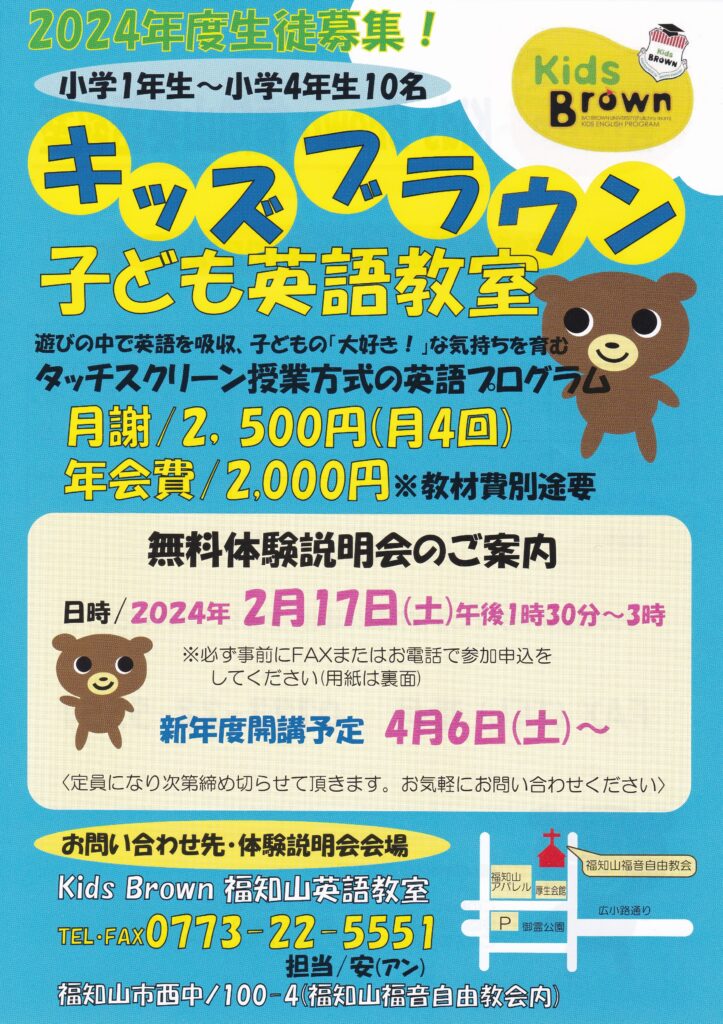 キッズブラウン子ども英語教室体験説明会のお知らせ